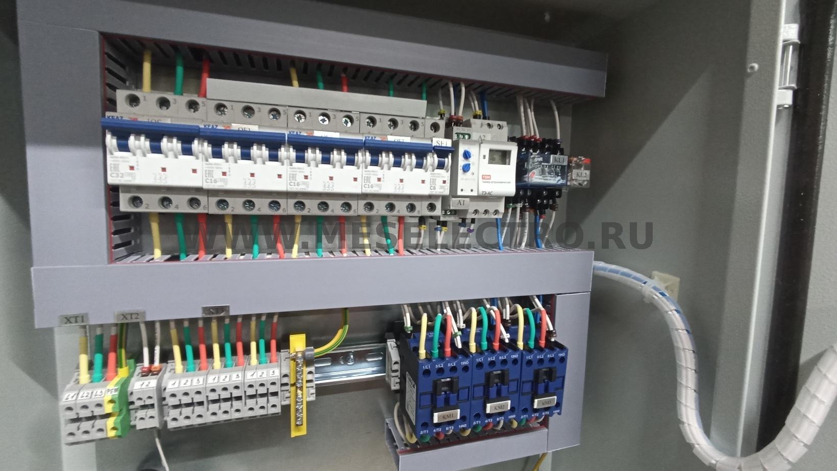 - Включения контакторов КМ1 / КМ2 / КМ3 осуществляется от местного управления (кнопки «ПУСК» и «СТОП») или от фотореле и суточного таймера.